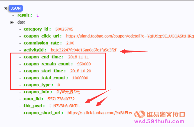 这样,维易高佣API接口就会从返回值中分析优惠券,并分成如上面所述的三种情形。