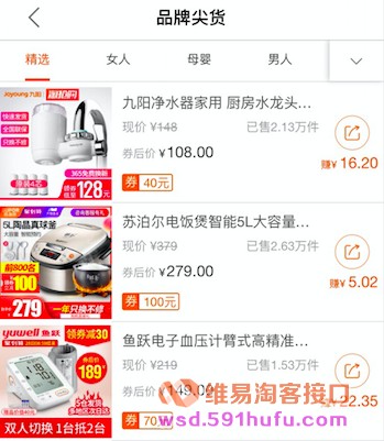 特色:综合品牌、佣金和券因素的优质商品