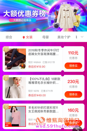 特色:数据源同联盟app的好券直播。小时计更新,展示联盟高佣优质商品库中的领券热门商品。
